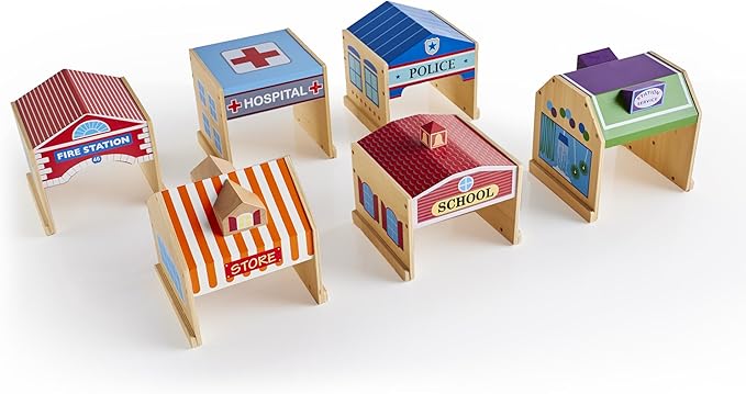 Guidecraft Community Buildings - 6pc Dramatic Play Set (Ages 2+)