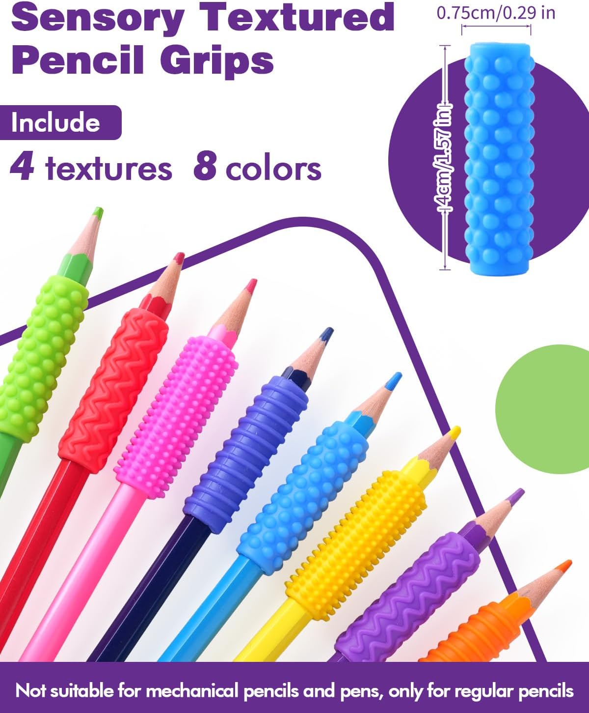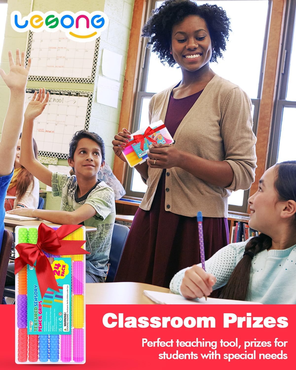 🌟【LESONG Textured Pencil Toppers】24-Pack Sensory Tools|ADHD Autism Support🌟