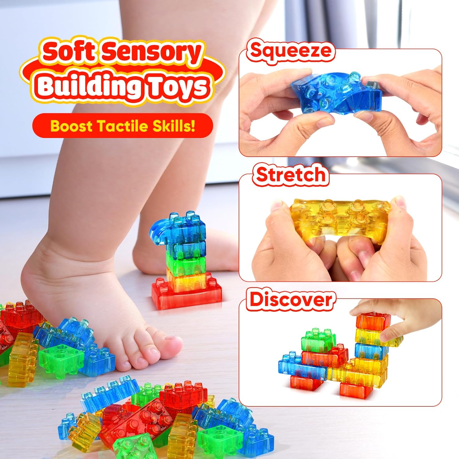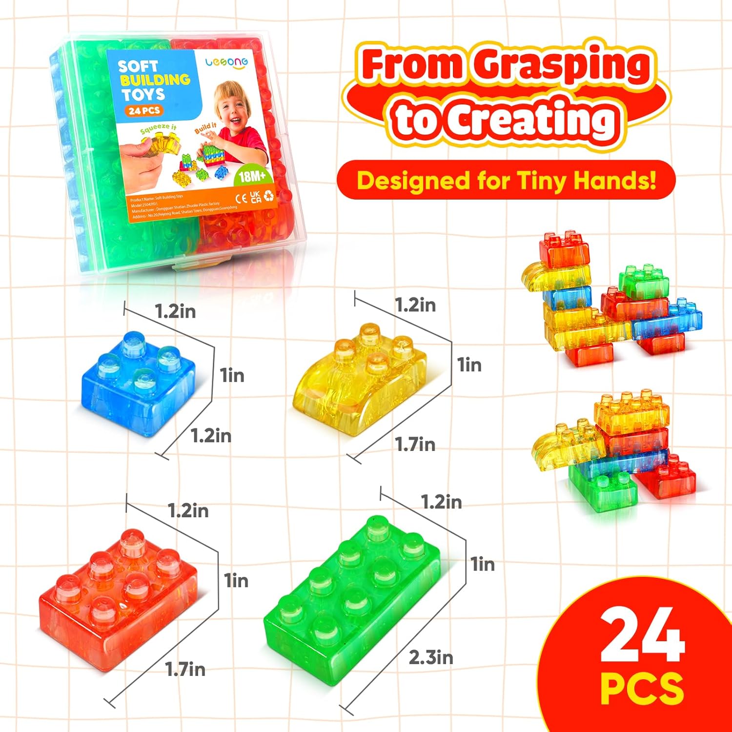 🌟【LESONG Sensory Soft Building Blocks】24PCS Squeezable Stacking Toys|Early Learning Set|Safety Certified🌟