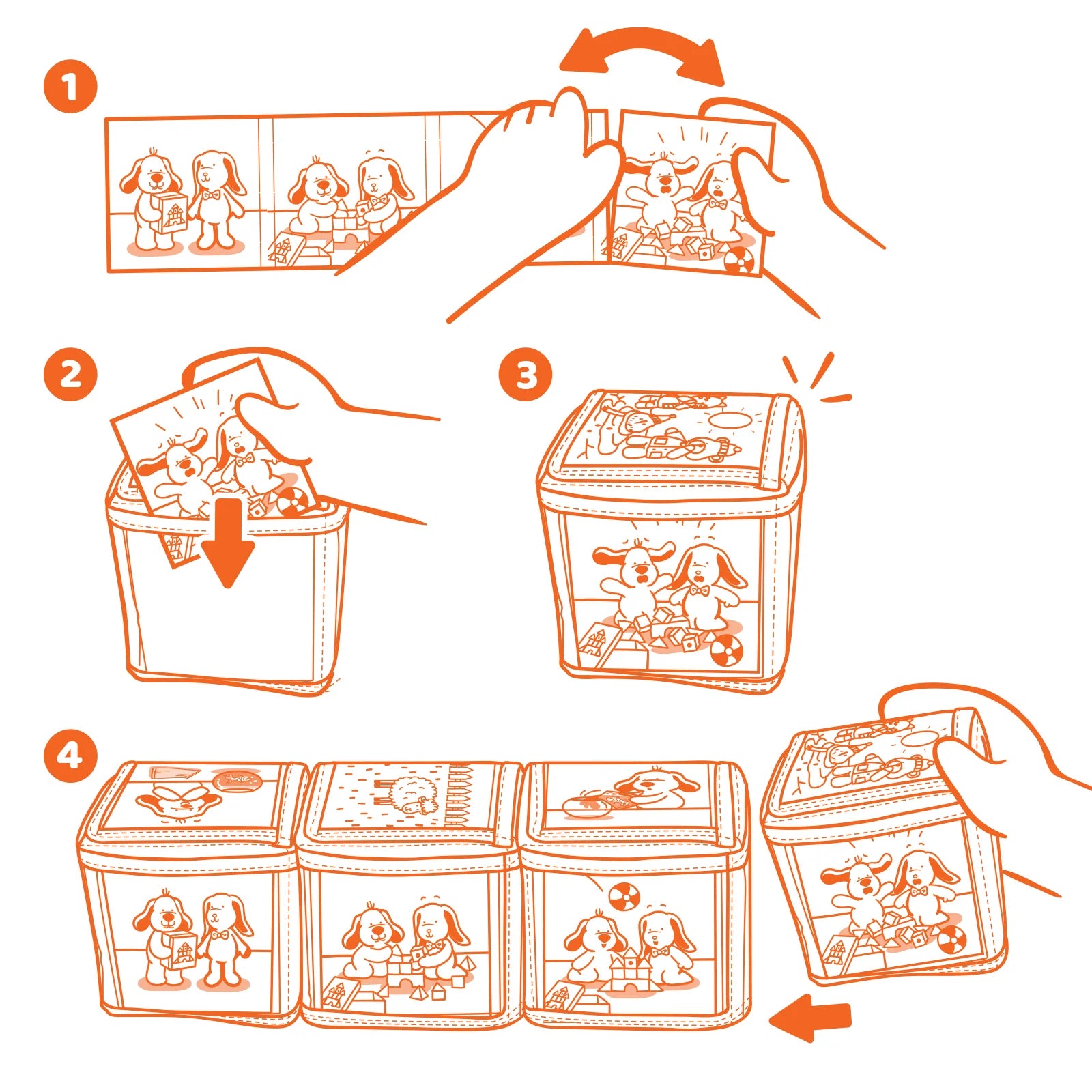 • Soft fabric cubes (8cm each) – safe, durable & easy for little hands to handle & swap cards