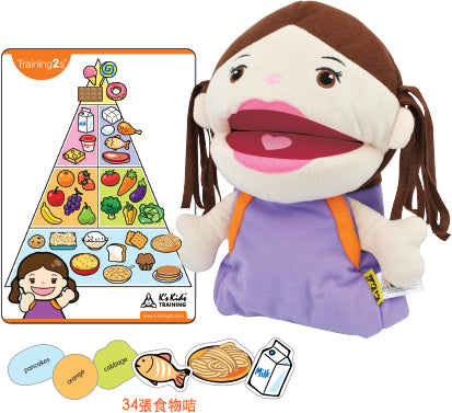 • 包含:1隻手偶、34張食物卡、1張食物金字塔卡
