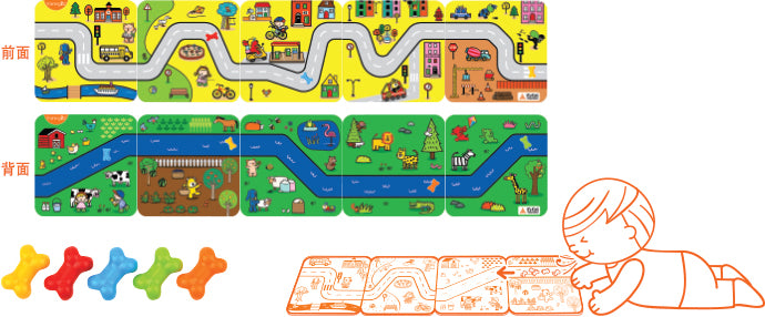 • 5張雙面卡紙提供多種軌道圖案 + 可加減骨頭數量,難度逐步進階,適合不同階段孩子
