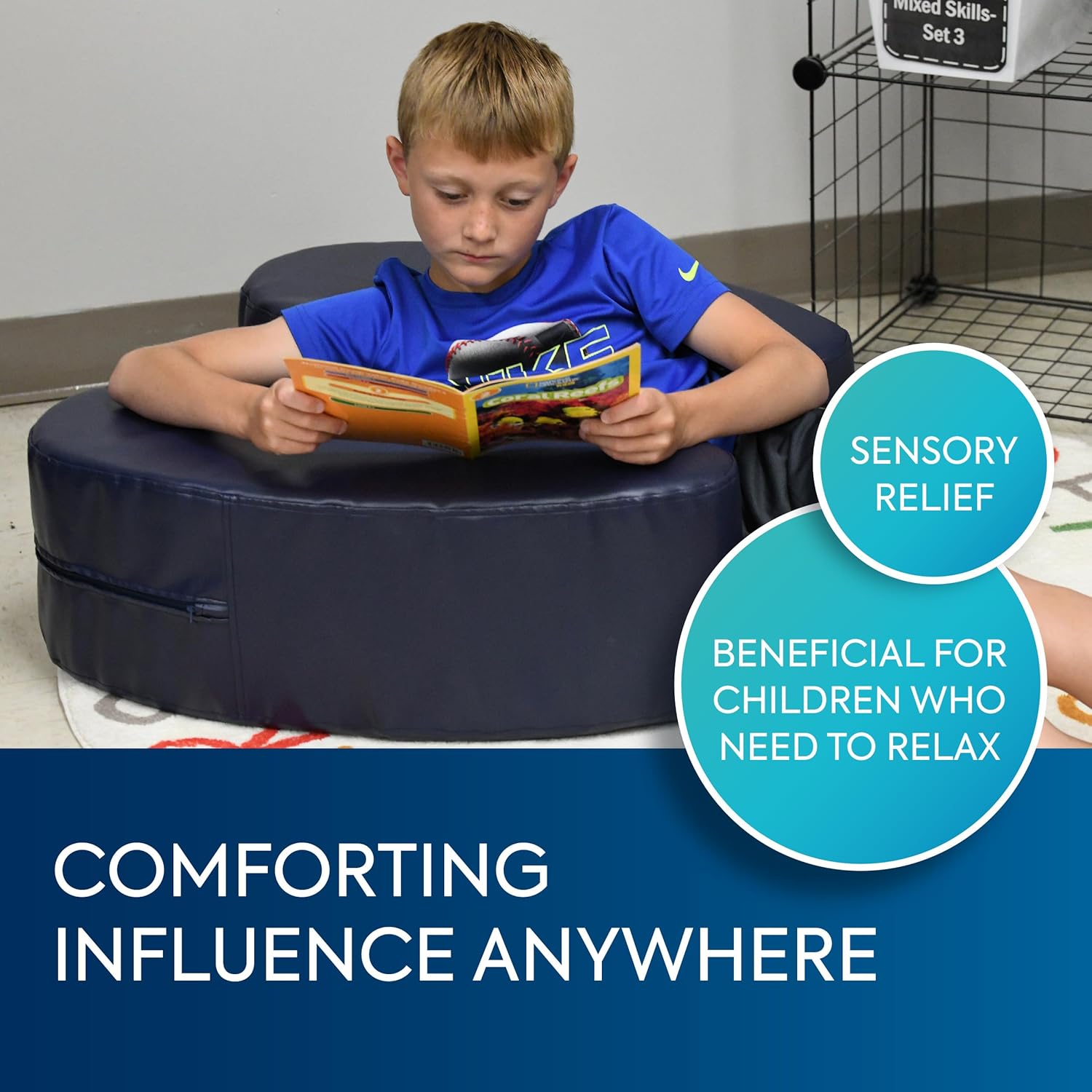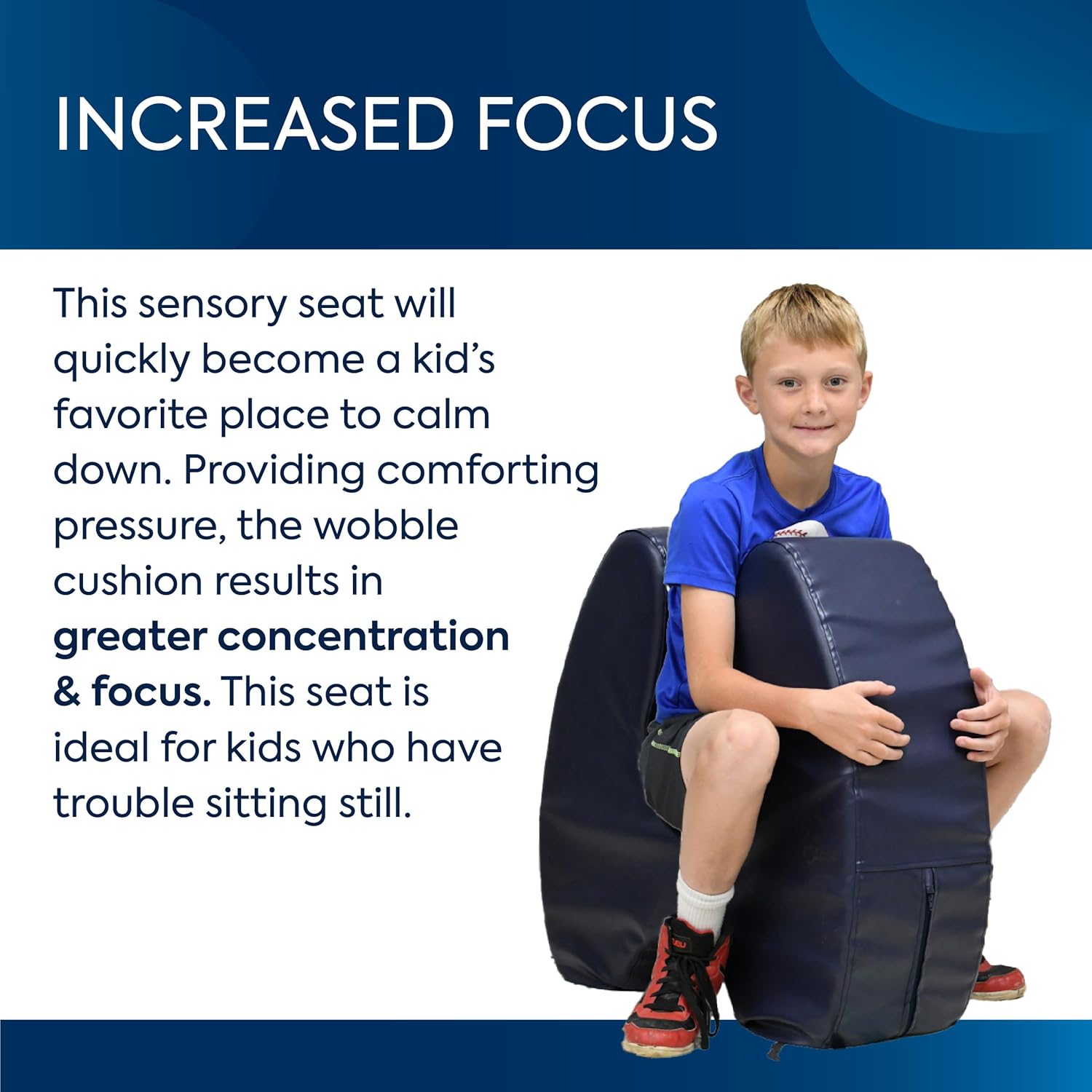 C-shaped embrace seat designed for sensitive children ages 3-9, delivering continuous lateral pressure through ergonomic curves to create a portable "emotional anchor" for focus and calm.